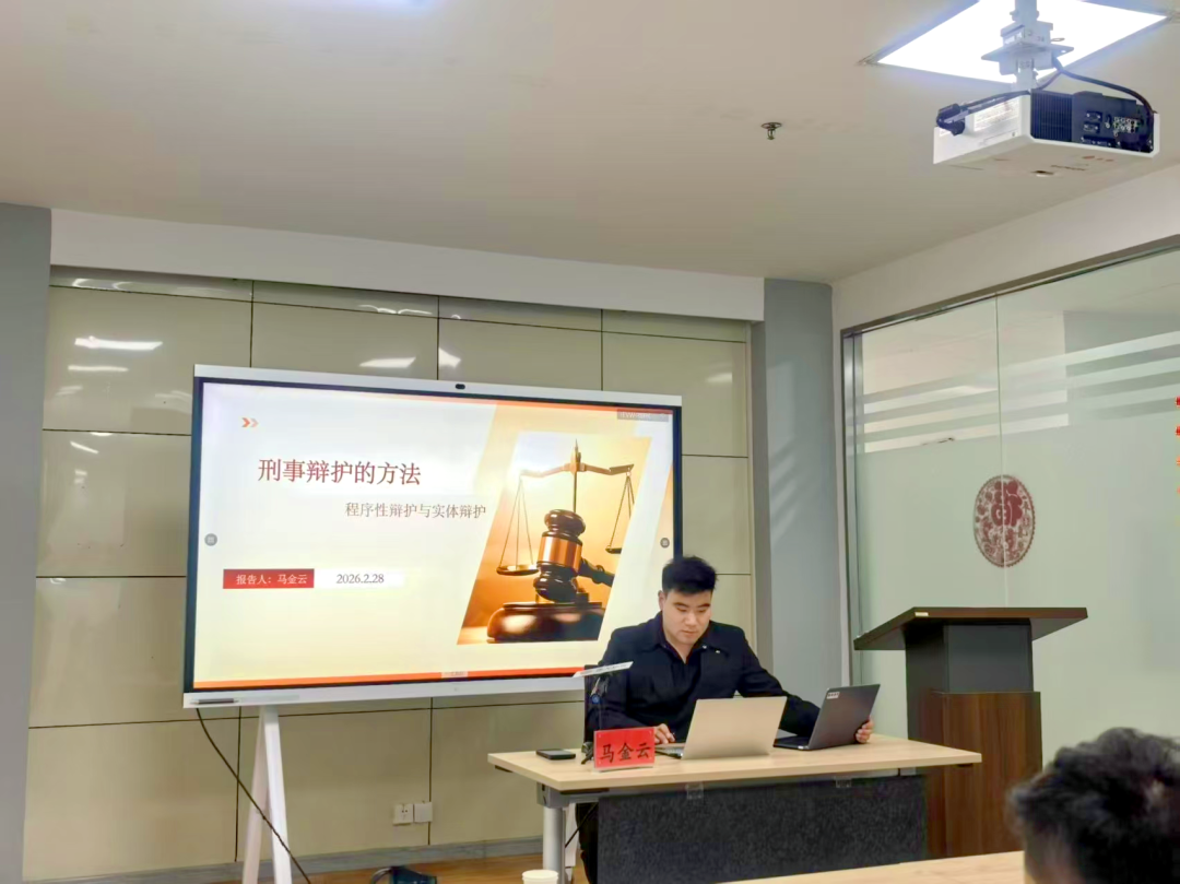 马金云律师以《刑事辩护实务分析》为主题,结合自身深耕刑事辩护领域的丰富执业经验,从刑事辩护基础理论切入,展开系统且深入的专业分享。他重点解析了程序性辩护与实体辩护的内在关联,系统阐释了程序性辩护的内涵、常见适用情形及实务操作技巧;同时精准界定实体辩护的核心要义、适用场景与实操关键要点。通过层层递进、逻辑清晰的讲解,有效帮助参训律师构建起更为系统、精准的刑事辩护实务认知,全面提升了大家办理刑事案件的专业素养与实战能力。