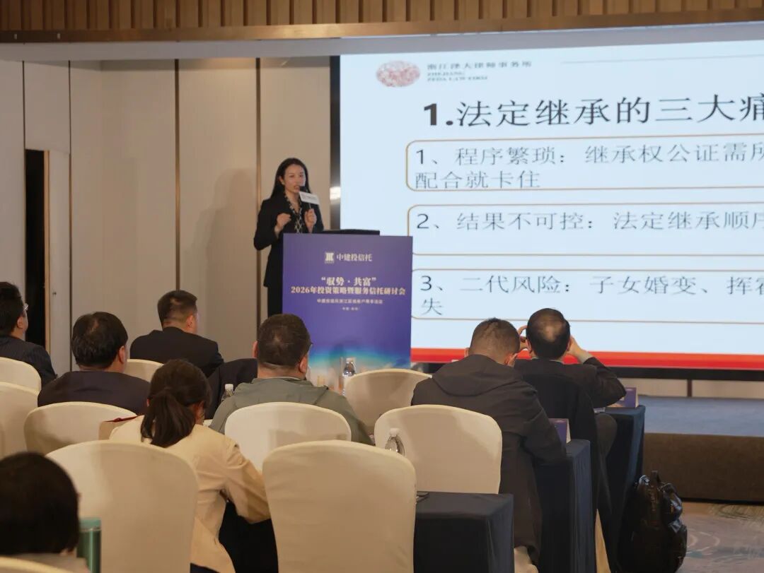 本次活动的主办方中建投信托特邀泽大律师事务所深耕家事法律领域多年的鲍婷婷律师,以《企业、婚姻与传承——高净值家庭风险隔离与财富规划》为主题,聚焦高净值家庭财富核心痛点,以专业实务视角,拆解财富风险,详解家族信托实操应用,为守富、传富提供了务实可行的解决方案。